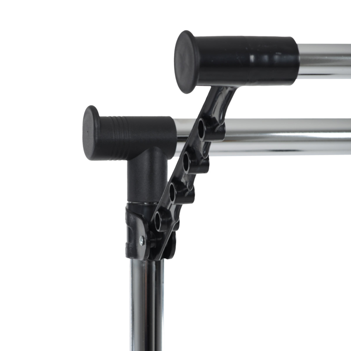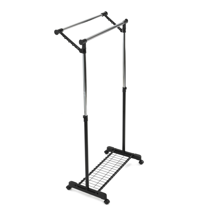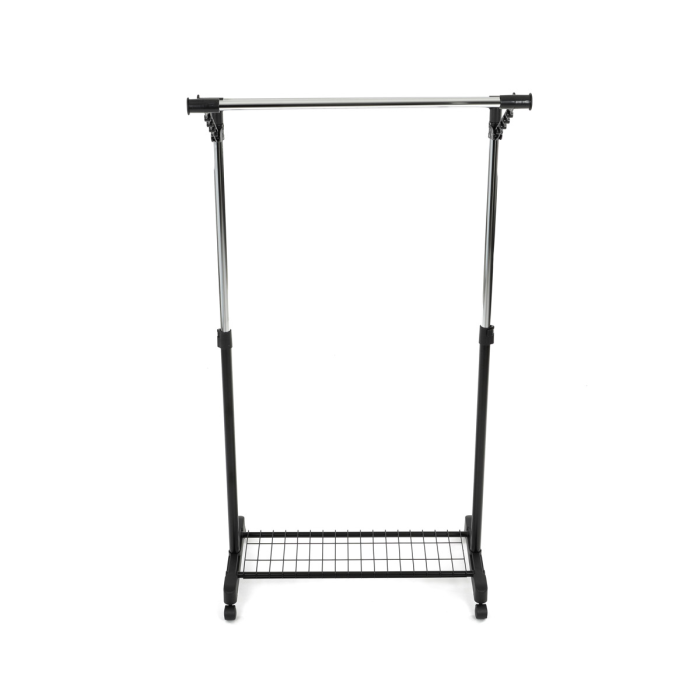 Mobilní stojan na šaty značky Autronic je praktickým řešením pro uložení oblečení v ložnici, šatně nebo předsíni. Černá kovová konstrukce doplněná chromovými detaily zajišťuje moderní vzhled a vysokou stabilitu. Díky nastavitelné výšce se snadno přizpůsobí vašim potřebám. Dolní mřížkovaná police poskytuje další úložný prostor, například na boty či tašky. Stojan je vybaven kolečky, což umožňuje snadnou manipulaci. Je ideálním doplňkem pro ty, kteří hledají flexibilitu a funkčnost spojenou s elegantním designem.