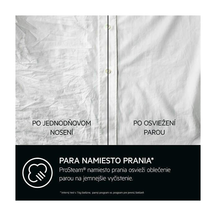 Naparenie namiesto prania je jedným z najlepších spôsobov, ako osviežiť oblečenie, ktoré ešte nepotrebuje úplne vyprať. Práčka 7000 ProSteam® môže na osvieženie odevov použiť parný cyklus, ktorý spotrebuje len 2 l vody na cyklus a je šetrnejší k oblečeniu.