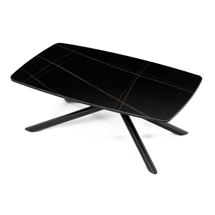 Tento konferenční stolek značky Autronic v industriálním stylu zaujme svým odvážným designem a atypickou podnoží. Deska ze slinuté keramiky s imitací černého mramoru dodává stolu luxusní vzhled. Pevná kovová konstrukce v černé barvě poskytuje stabilitu a elegantně kontrastuje s tmavou deskou. Centrální kruhová podnož tvoří originální prvek, který oživí jakýkoliv moderní interiér. Tento stolek je ideální pro obývací pokoje, kde chcete kombinovat styl s funkčností. Výjimečný design z něj dělá dominantní prvek vašeho prostoru.