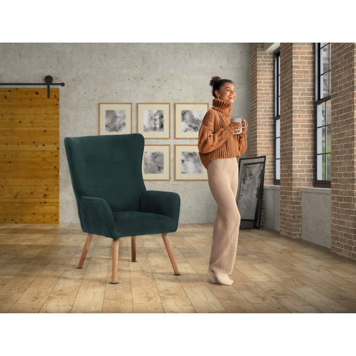 Elegantní zelené křeslo od značky Autronic přináší do vašeho interiéru kombinaci moderního designu a pohodlí. Vyrobené z kvalitní manšestrové látky, zajišťuje příjemný dotyk a odolnost. Nohy jsou z masivního dřeva v přírodní barvě, což dodává křeslu stabilitu a stylový vzhled. Svým moderním stylem se hodí do každého obývacího pokoje či pracovny. Posaďte se a relaxujte v tomto křesle, které je ideálním doplňkem vašeho domova.