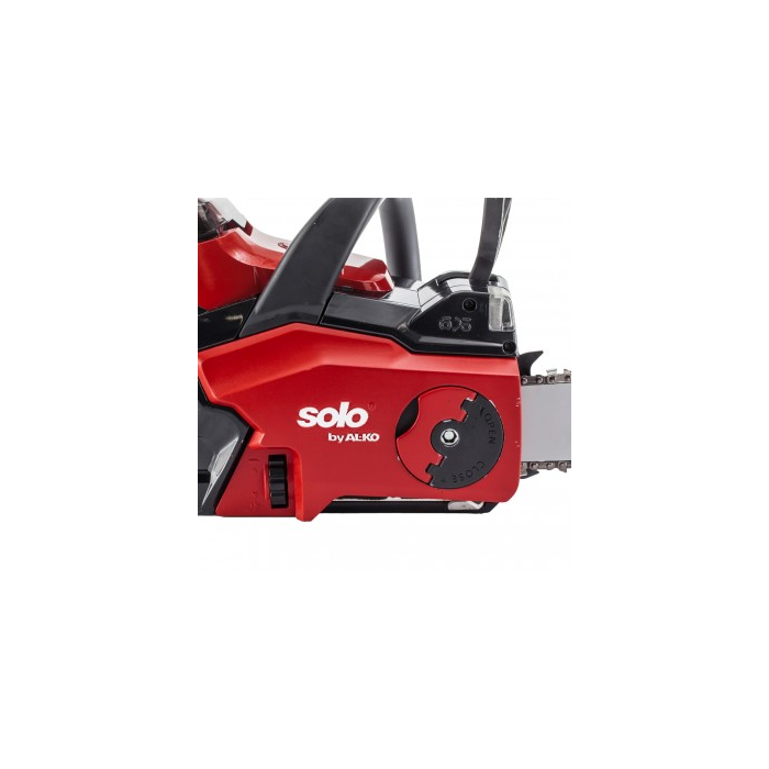 Akumulátorová reťazová píla solo® by AL-KO CS 3635. Ľahko použiteľný napínač reťaze bez použitia náradia. Dodatočná možnosť otvárania bočného krytu pomocou šesťhranného kľúča. Digitálny, podsvietený informačný displej pre prevádzkové stavy. Napájané silnou 36 V Li-Ion batériou (možné 2,5 / 4 / 5 a 8 Ah). Batéria a nabíjačka nie sú súčasťou balenia. Silný rezný výkon vďaka vysokej rýchlosti reťaze 24 m/s.