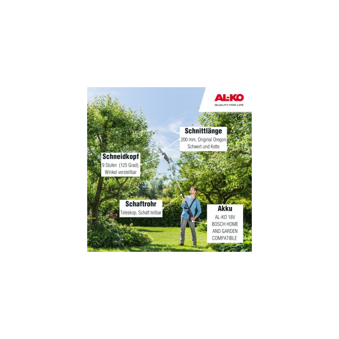 AL-KO CSA 1820 si môžete kúpiť v našom internetovom obchode alebo u niektorého z našich špecializovaných predajcov. Je to ľahký model na kvalitnú starostlivosť o stromy v záhrade.