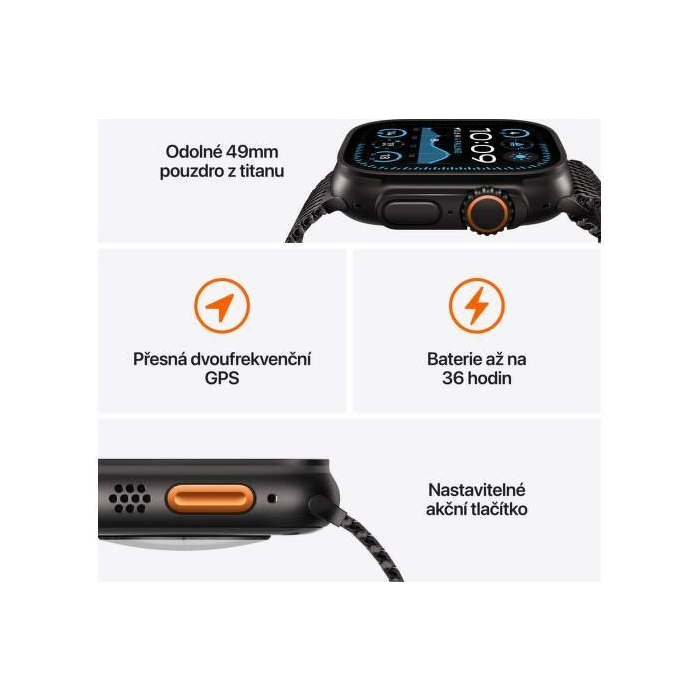 Vďaka vlastnému čipu Apple sú Apple Watch Ultra 2 výkonnejšie, ľahšie ovládateľné a rýchlejšie. Nový dvojjadrový procesor má 5,6 miliardy tranzistorov - o 60 percent viac ako predchádzajúce generácie. Nový štvorjadrový Neural Engine spracováva úlohy strojového učenia až dvakrát rýchlejšie. Niečo také v chytrých hodinkách ešte nebolo a umožňuje nové pokročilé funkcie, ako je Siri v zariadení, presné vyhľadávanie pre iPhone a nový kúzelný spôsob ovládania Apple Watch jednoduchým gestom dvojitého kliknutia.