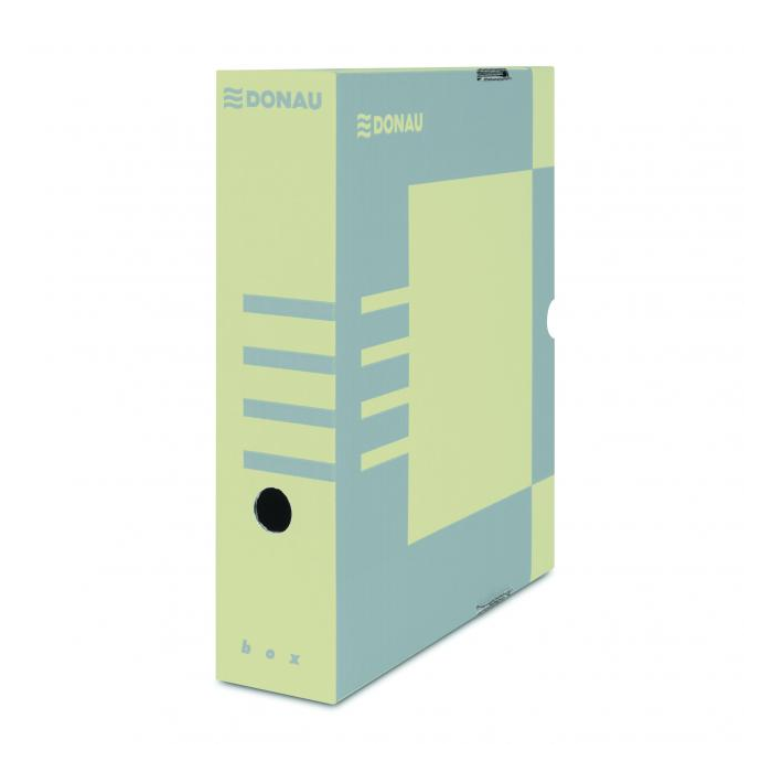 Vhodný na archiváciu dokumentov do formátu A4 s otvorom na ľahkú manipuláciu. Možnosť archivovať aj zakladač Donau. Predtlače na popis na dlhšej i kratšej strane umožňuje skladovanie vo vodorovnej aj zvislej polohe. Box je využiteľný samostatne alebo v kombinácii s archivačnými krabicami. Gramáž 390 g. Rozmery 297x80x339mm. Väčšie balenie 20 ks.