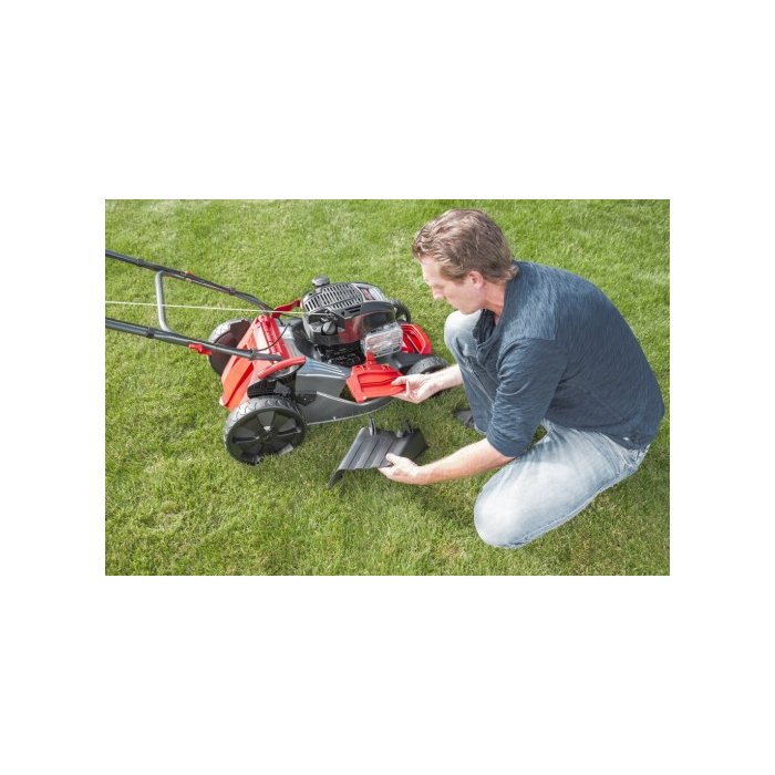 Úsporný 1-rychlostní pohon kol. Komfortní centrální nastavení výšky sečení. Ergonomicky tvarovaná rukojeť pro větší pohodlí. XXL kola s kuličkovými ložisky pro snadné ovládání. 4IN1function (sečení, sběr, mulčování, boční výhoz). Integrované transportní držadlo pro snadnou manipulaci. Tělo z ocelového plechu s technologií MaxAirflow pro nejlepší vlastnosti sečení a sběru.