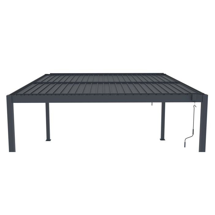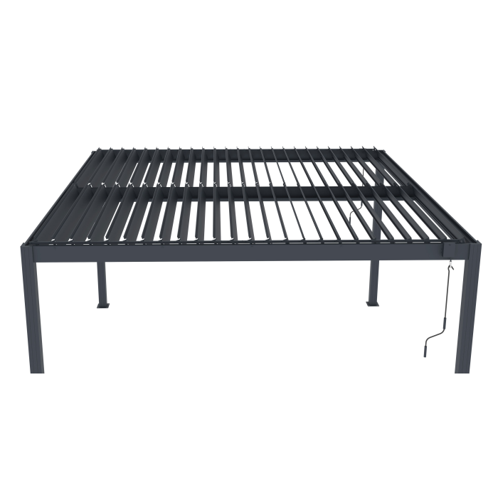 Štýlová záhradná pergola z odolného hliníka s manuálne nastaviteľnými rotačnými lamelami, po uzavretí vodotesnými. Odvod vody a široké možnosti príslušenstva na dokonalé prispôsobenie vašim potrebám.
