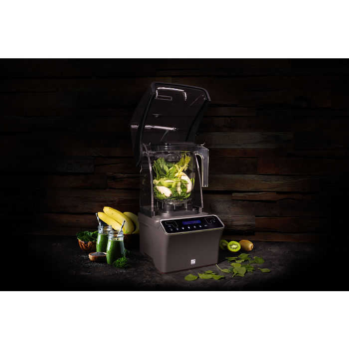 Atraktívny stolný mixér, 1,2l nádoba, výkon 1 500 W, 28 000 ot./min., digitálne ovládanie, dotykový displej, prednastavené aj vlastné mixovacie programy, odhlučňovací kryt pre tiché mixovanie. Tritan Copolyester, kovové prevody. Grafitovo čierna farba.