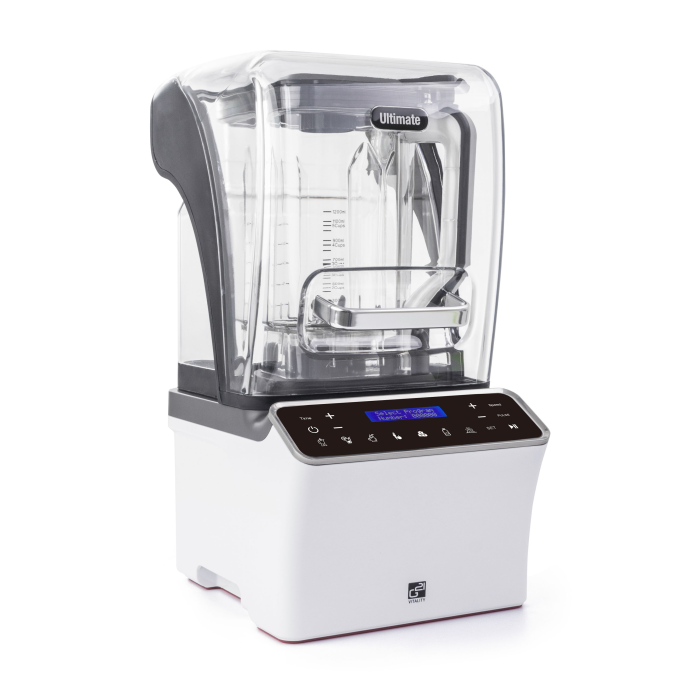 Multifunkčný vákuový stolový mixér, výkon 1 500 W, 28 000 ot./min., 1,2 l nádoba, dotykový displej, prednastavené mixovacie programy, mixuje, drví aj melie, odhlučňovací kryt, bezpečnostná poistka. Tritan Copolyester, kovové prevody. Biela farba.