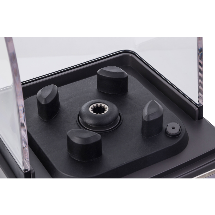 Po uzavretí mixovacej nádoby so surovinami sklopíte odhlučňovací kryt, jedným dotykom spustíte vákuovanie a potom môžete mixovať.