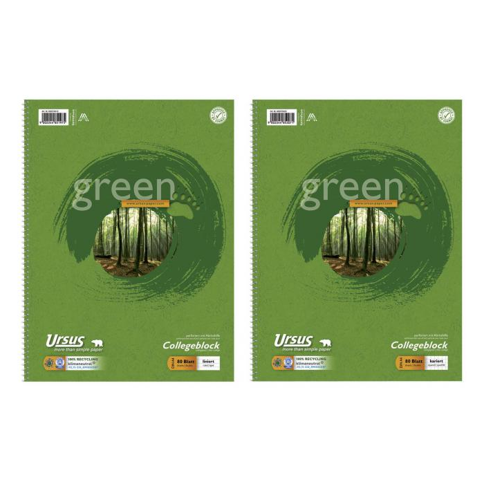 Ursus® Green - krúžkový blok so špirálou na boku vyrobený z vysoko kvalitného písacieho papiera s hmotnosťou 70 g / m2. 100%, papier vyrobený výlučne z recyklovaných vlákien;