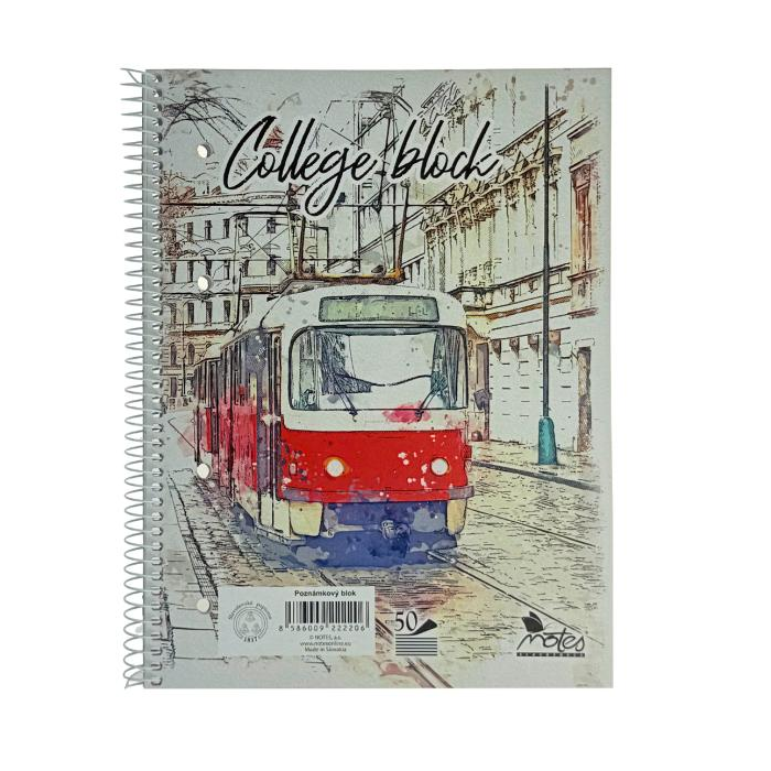 Blok s kovovou špirálou formátu A5 s 50 listami, so špirálou na boku v atraktívnom vyhotovení, vo vnútri bezdrevný papier s hmotnosťou 60 g / m2, 4 - dierkovanie na jednoduché vkladanie do zakladača.