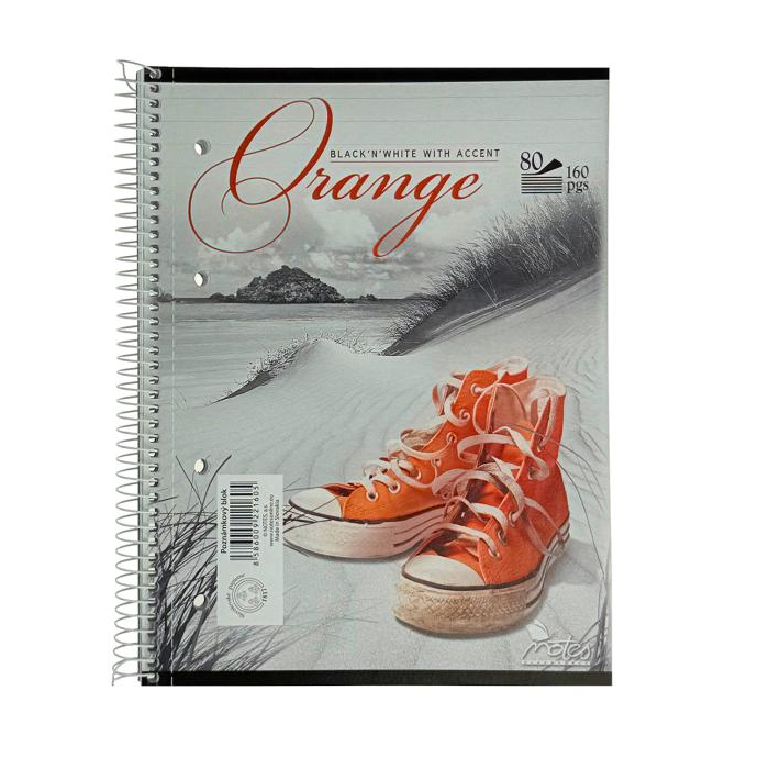 Bloky linajkové s kovovou špirálou po dlhšej strane, a otvormi pre zakladanie do šanónov, perforované, vyrobené z bezdrevného papiera, 80-listové.