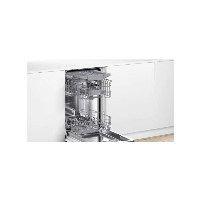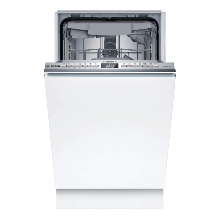 Bosch SPV4HMX10E je plne integrovaná vstavaná umývačka riadu s energetickou triedou E. S kapacitou 10 súprav riadu a spotrebou 76 kWh na 100 cyklov ponúka energeticky efektívne riešenie pre vašu domácnosť. Tichý chod s maximálnou hlučnosťou 44 dB umožňuje pohodlné používanie aj v noci. Spotreba vody je len 9,5 l na umývací cyklus. Vďaka smart ovládaniu mobilom môžete umývačku ovládať na diaľku. Ponúka 6 programov a funkciu AquaStop pre bezpečné použitie. Rozmery sú 81,5 cm na výšku, 44,8 cm na šírku a 55 cm na hĺbku. Predná krycia doska nie je súčasťou balenia.
