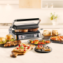 Multigril sa pýši veľkou grilovacou plochou 37 × 23 cm, čo vám umožní pripraviť jedlo až pre osem osôb naraz. Po rozložení grilu sa plocha zdvojnásobí, čím sa zvyšuje variabilita varenia. Vďaka nepriľnavému povrchu platničiek sa nemusíte obávať pripečenia. S Multigrilom objavíte nové kulinárske možnosti pri príprave lahodných pokrmov.