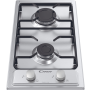 Varná doska – plynová, vstavaná, 2 platničky, zabezpečenie proti úniku plynu, elektrické zapaľovanie, otočné gombíky, zaoblené hrany, bez rámika, vzhľad nehrdzavejúca oceľ, povrch nehrdzavejúca oceľ, pripojenie 230 V, rozmery 28,8 × 51 × 4,5 cm (Š×H×V), na zapojenie spotrebiča je potrebný elektrikár, na zapojenie spotrebiča je potrebný plynár