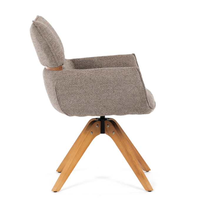 Jídelní židle Autronic v krémové barvě je skvělou volbou pro elegantní a pohodlné sezení. Její čalounění z hladké látky v kombinaci s měkkou PU pěnou poskytuje maximální komfort. Stabilitu zajišťují masivní dřevěné nohy v přírodním odstínu, který podtrhuje skandinávský styl. Díky otočné funkci o 360° s vratným mechanismem nabízí flexibilitu při sezení. Područky a dekorativní masivní prvky dodávají židli sofistikovaný vzhled. Ideální doplněk do moderní jídelny, který spojuje zábavu a praktičnost.