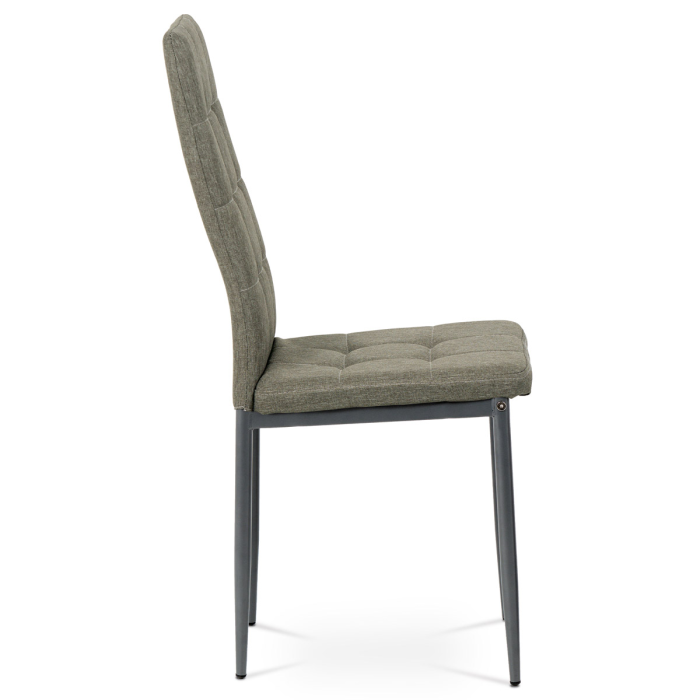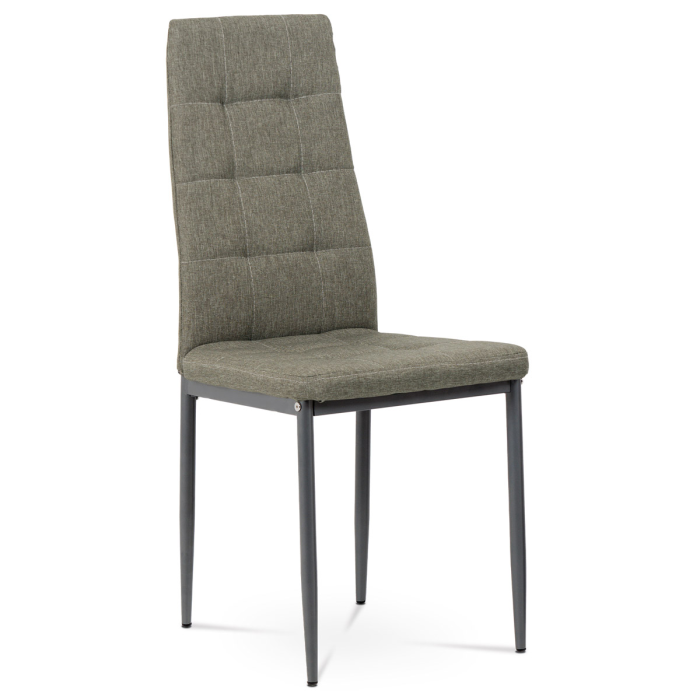 Jídelní židle v industriálním stylu a minimalistickém designu. Je potažena středně hrubou lanýžovou látkou s výrazným čtvercovým prošitím s čalounickými vtahy sedáku i opěráku. Polstrování je z kvalitní PU pěny. Čtyřnohá podnož je kovová, s povrchovou úpravou antracitovou matnou práškovou barvou. Nohy jsou kruhového průřezu a kónické, na koncích jsou opatřeny černými plastovými kluzáky, které minimalizují nebezpečí poškození povrchu podlahy na minimum. Nosnost židle je až 110 kg. Tato židle najde platné využití v prostorách domácí jídelny či kuchyně.