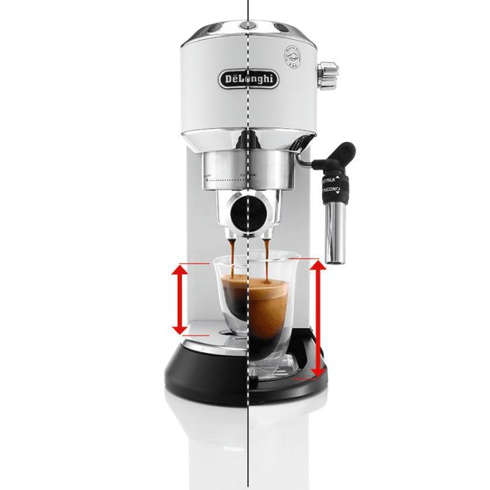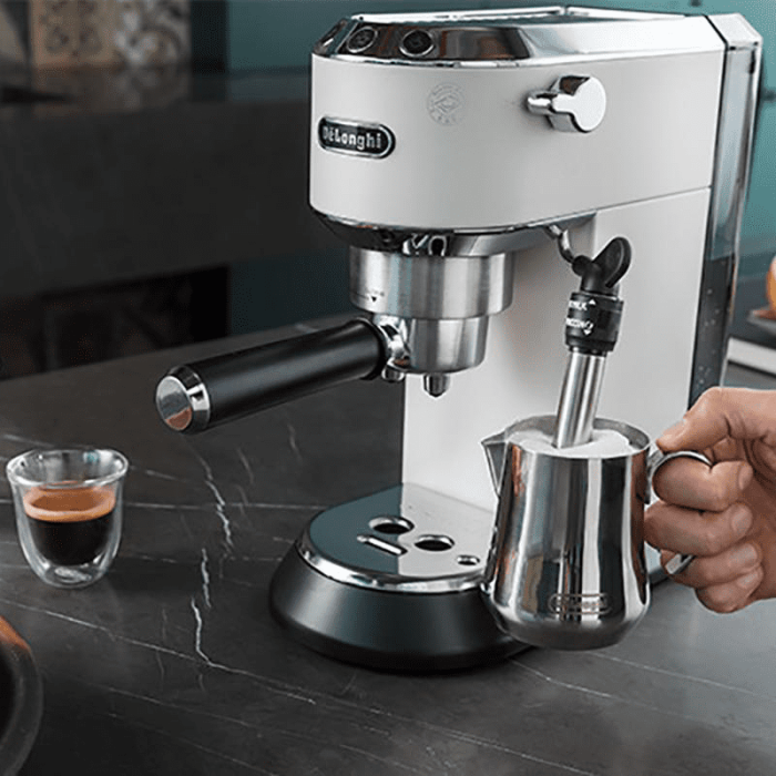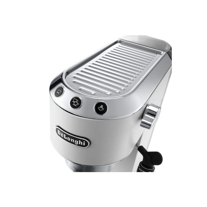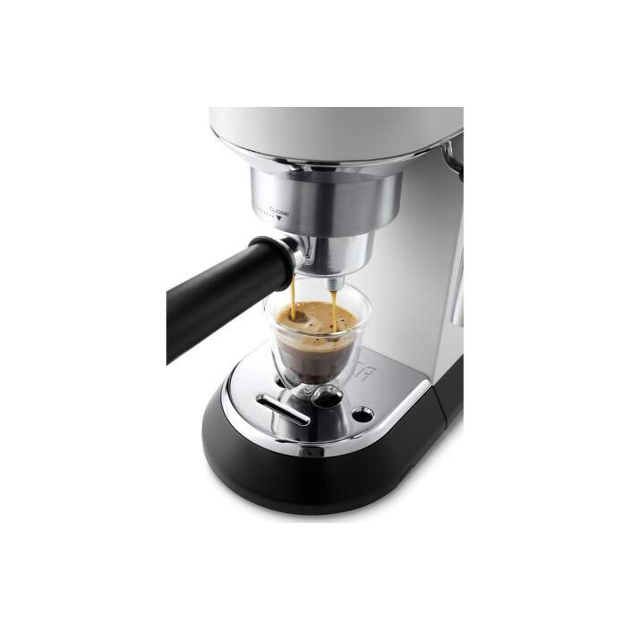 Pákový kávovar Dedica je nenahraditeľným pomocníkom pre chvíle, určené na oddych pri šálke kávy v pohodlí domova. Jedinečný dizajn kávovaru je plný viacerých užitočných riešení, ktoré urobia každú šálku čerstvo uvarenej kávy perfektnou aj pre tých najnáročnejších milovníkov kávy. Štíhla silueta kávovaru, iba 15 cm, zapadne do každej kuchyne, jedálne alebo domáceho baru.