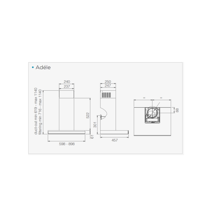 Čierna farba digestora ADÉLE BL MAT/A/90 GFB umožňuje integráciu do akéhokoľvek interiéru kuchyne. Jeho sací výkon je 325 - 630 (770) m3/h pri hlučnosti 55 - 69 (74) dB (A) . Je vybavený osvetlením LED s výkonom 1x7 W teplotou 3000K a svietivosťou 421 LUXOV. Vďaka funkcii MAINTENANCE ALARM budete dopredu upozornený o maximálnej nasýtenosti tukového ( pachového ) filtra. Takže budete vždy vedieť, kedy ich potrebujete umyť alebo vymeniť. Budete môcť udržiavať svoj produkt čistý a funkčný.