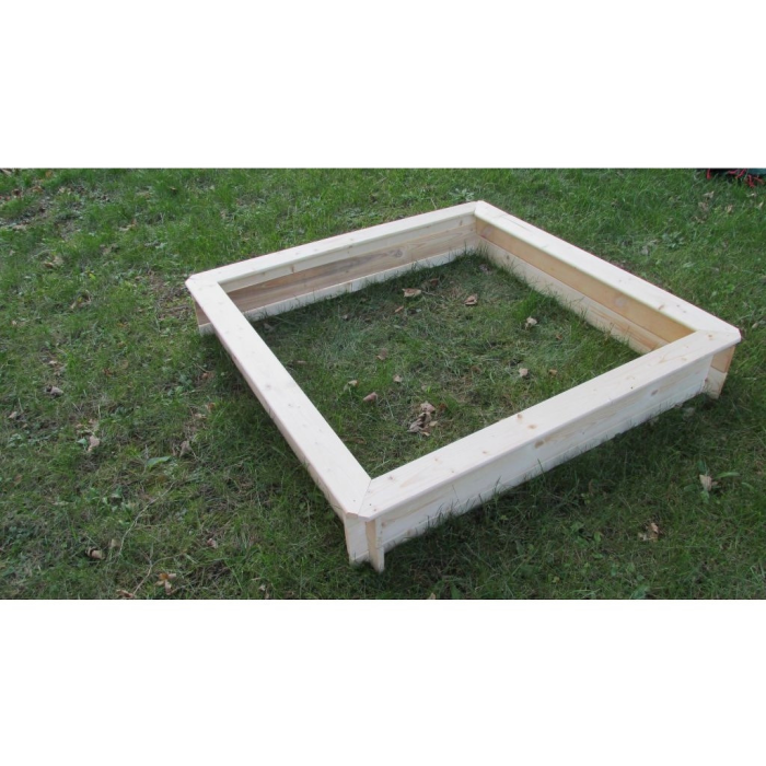 Drevené štvorcové pieskovisko s rozmermi 120 x 120 x 26 cm. Na pieskovisku je možné sedieť po celom jeho odvode.