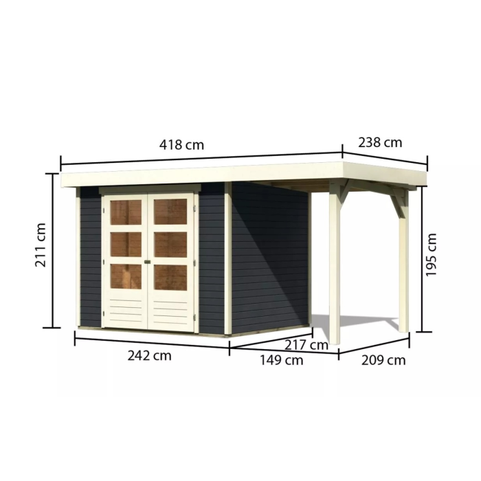 Tento model domčeka dodávame v profesionálnom nátere KARIBU (farba antracit RAL 7016)