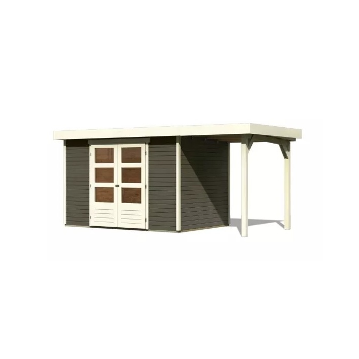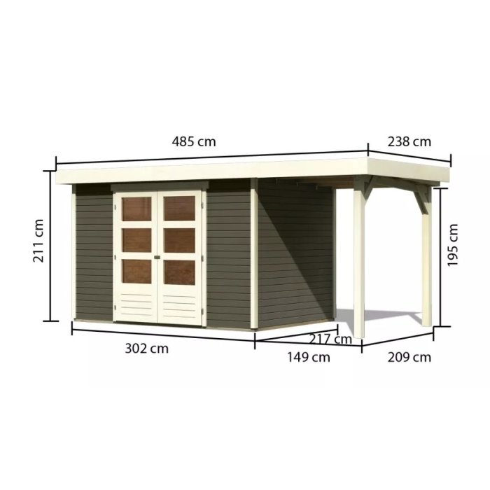 Tento model domčeka dodávame v profesionálnom nátere KARIBU (odtieň terragrau RAL 0604005):