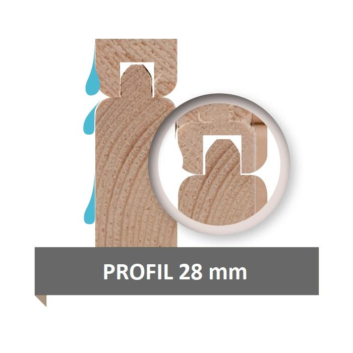 • drevené profily hrúbky 28 mm