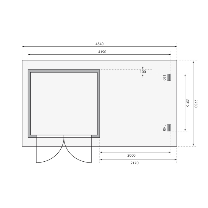 Táto verzia domčeka obsahuje prístavok vrátane zadnej a bočnej steny dĺžky 200 cm.