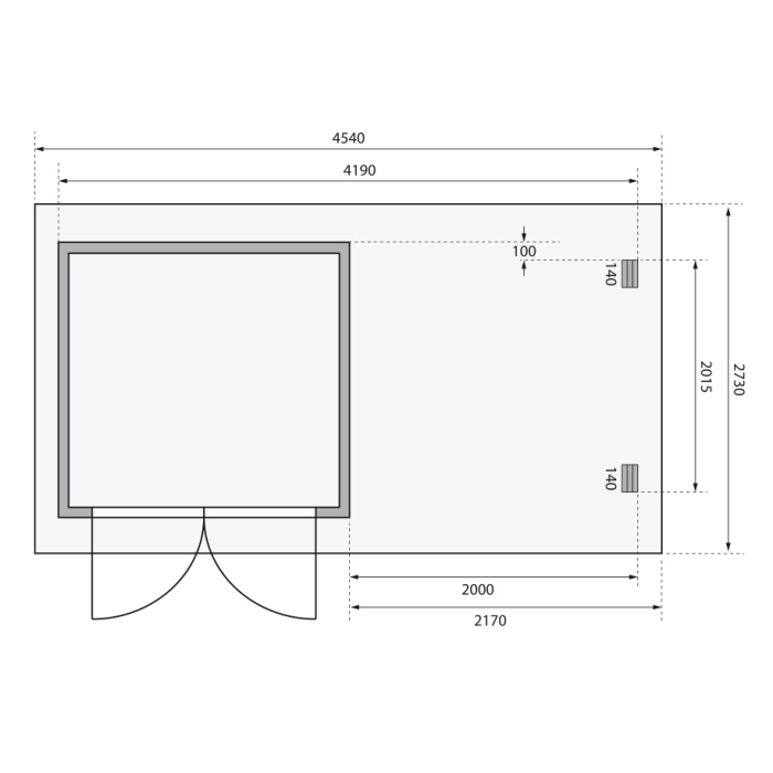 Táto verzia domčeka obsahuje aj prístavok vrátane zadnej steny dĺžky 200 cm.