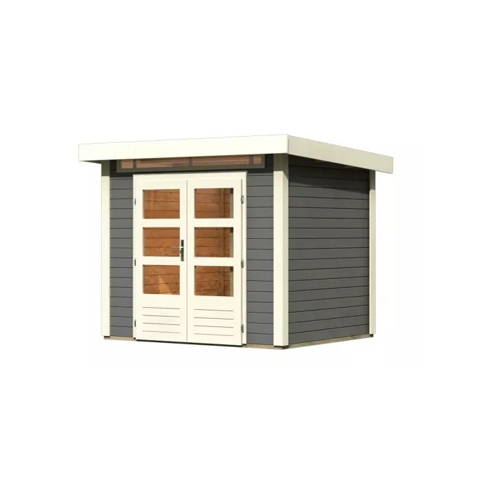 Tento domček KARIBU dodávame v profesionálnom náteru TERRAGRAU: