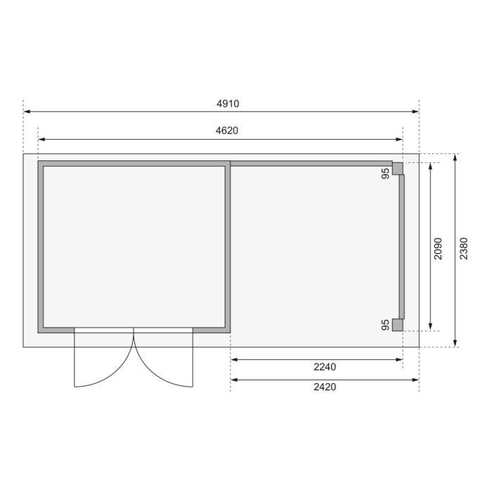 Táto verzia domčeka obsahuje aj prístavok vrátane zadnej steny dĺžky 240 cm.