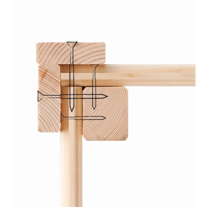 Pozor, balík s materiálom nie je vodotesný. Fólia chráni drevo len proti znečisteniu. Skladujte preto stavebnú sadu až do konečnej montáže v suchu, nie priamo položenú na zemi, chránenú proti vplyvom počasia (vlhkosť, slnko atď.). Neskladovať vo vykurovanom priestore!