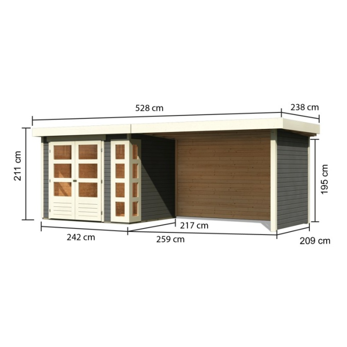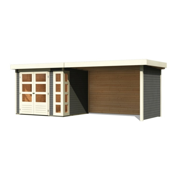 drevený domček KARIBU KERKO 3 + prístavok 280 cm vrátane zadnej a bočnej steny (82939) terragrau LG2963