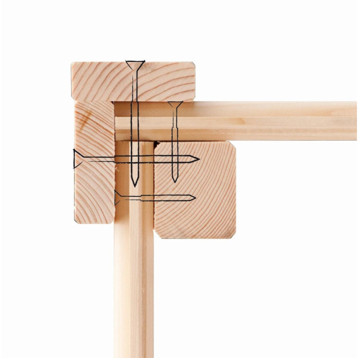 Venujte prosím MIMORIADNU starostlivosť pri budovaní základu pre domček. Základ postavte tak, aby horná hrana základu presahovala asi o 5 cm okolitý terén. Základ musí byť presne vyvážaný do vodorovnej roviny a odvodnený, aby základové trámiky ležali v rovine. Aby bolo zabránené priamemu kontaktu so zemou a vniknutiu zemnej vlhkosti do trámikov, podložte nosný rošt domčeka pásky z bitúmenové lepenky (nie sú súčasťou dodávky). Pre trvanlivosť základov je nutné dodržať tieto najdôležitejšie predpoklady - podklad, pravouhlosť a presná rovina. S kvalitným základom vydrži domček o mnoho rokov dlhšie. Nechajte si poradiť alebo základ nechtajte zhotoviť odborníkom - stavbárom.