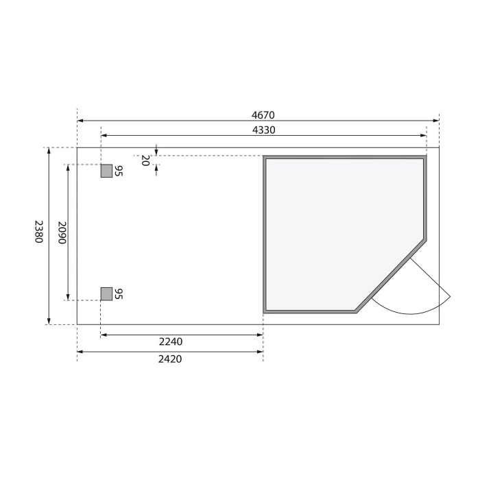 Základný model rohového dreveného domčeka pre vašu záhradu. Tento model má pultovú strechu a jednokrídlové dvere na pántoch. Stavebným materiálom domčeka sú drevené profily hrúbky 19 mm perfektne vyfrézované zo severského smreka. Dodávame ako stavebnicu v rozloženom stave, kde steny tvoria jednotlivé drevené profily, ktoré iba zosadíte k sebe a zoskrutkujete, strechu tvorí celistvá doska. To garantuje extrémne jednoduchú montáž, ktorú zvládne každý domáci majster.