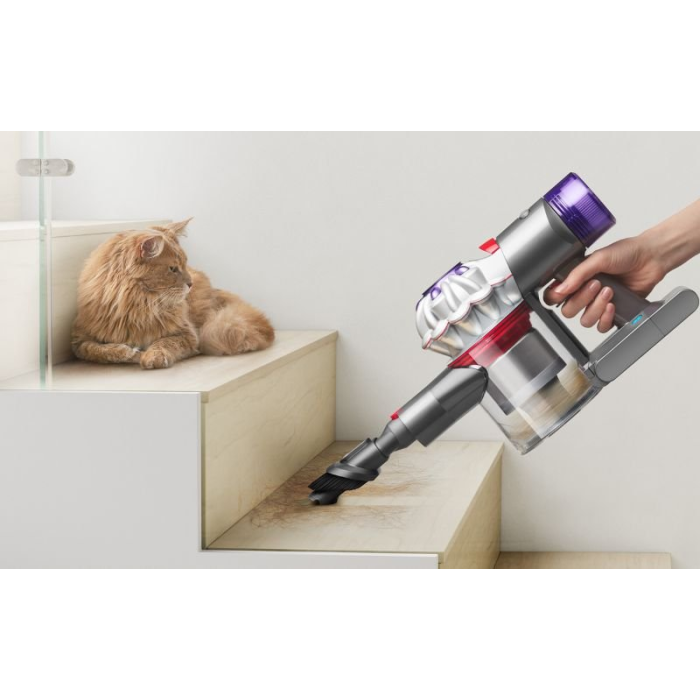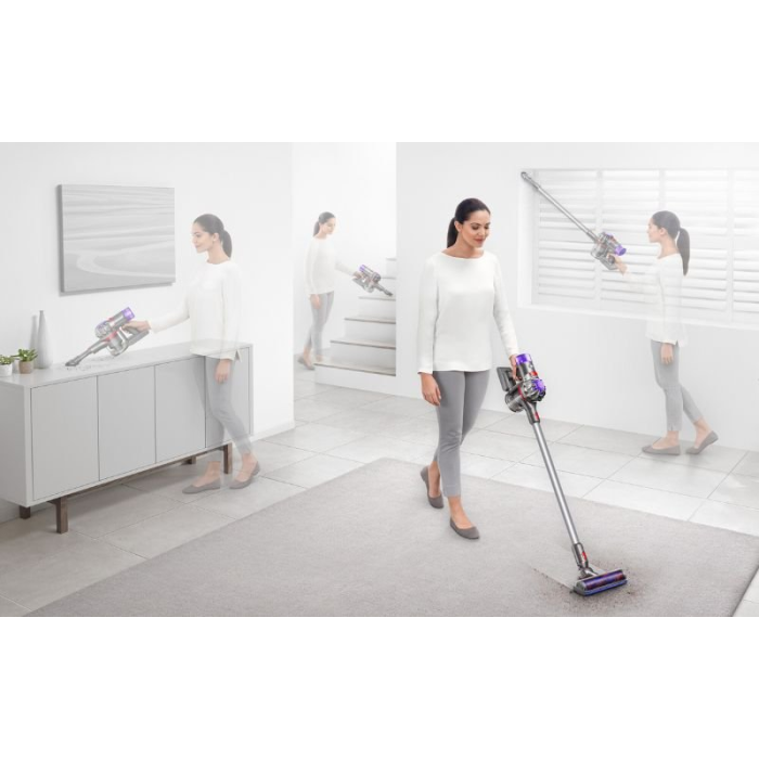 Dyson V8 s digitálnym motorom sa otáča až 110 000 ot./min a poskytuje 115 Air Watts sacieho výkonu pre hĺbkové čistenie celého domu. S výdržou 40 minút čistí efektívne na všetkých podlahách, vrátane kobercov a tvrdých podláh. Obsahuje kombinovaný a štrbinový nástroj pre ťažko dostupné miesta.