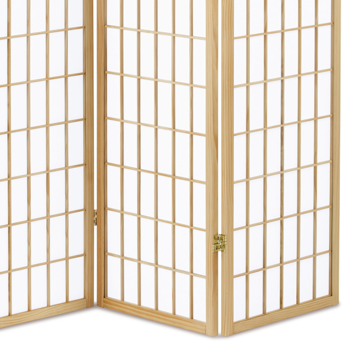 3dílný volně stojící paraván s konstrukcí z masivního smrkového dřeva v přírodní barvě. Výplň z bílé netkané textilie. Plní nejen funkci okrasnou, ale také praktickou. Lze jej použít jako zástěnu nebo diskrétní i optickou dělící příčku nejen v bytě, ale i v komerčních prostorách. Díky skládací konstrukci a celkové nízké hmotnosti jej lze bez problémů přemísťovat a manipulovat s ním. Kombinace dřeva a netkané textilie působí vzdušným dojmem, stylově lze paraván umístit do jakkoli zařízeného interiéru. V každém si najde zasloužené místo. Výška paravánu je 178 cm, šíře jednoho dílu 43,5 cm, celková plná šíře je 132 cm. Tloušťka stěny jsou 2 cm. Stěny paravánu jsou k sobě připevněny kovovými pomosazenými panty. Celková hmotnost je 5 kg.