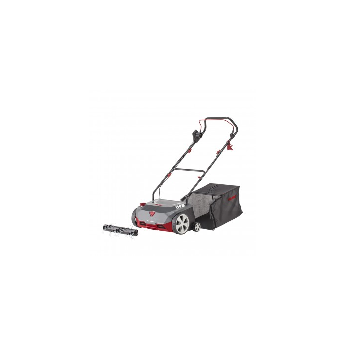 Plynulé centrálne nastavenie hĺbky. Vhodné pre až 800 m² pracovnej plochy. Ľahké, manévrovateľné 1-nápravové zariadenie. Bez emisií vďaka 1400 W elektromotoru. 3-stupňovo výškovo nastaviteľná ergonomicky tvarovaná pracovná rukoväť. Obsahuje vertikutačný valec (38 cm), prevzdušňovací valec (38 cm) a zberný box (50 l).