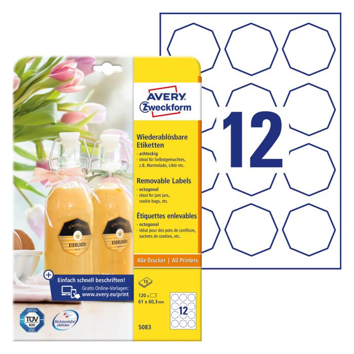 Etikety osemhranné.