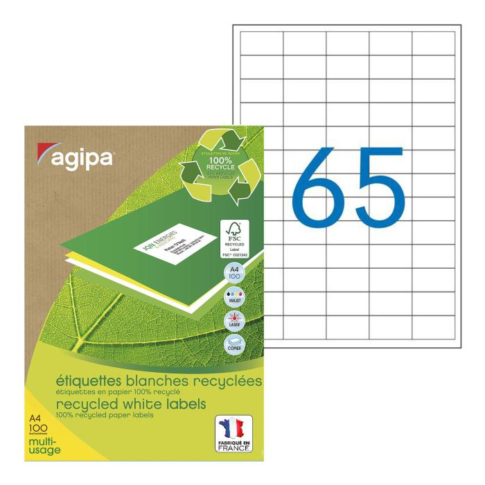 Etikety univerzálne recyklované 38x21,2mm Agipa A4 100 hárkov