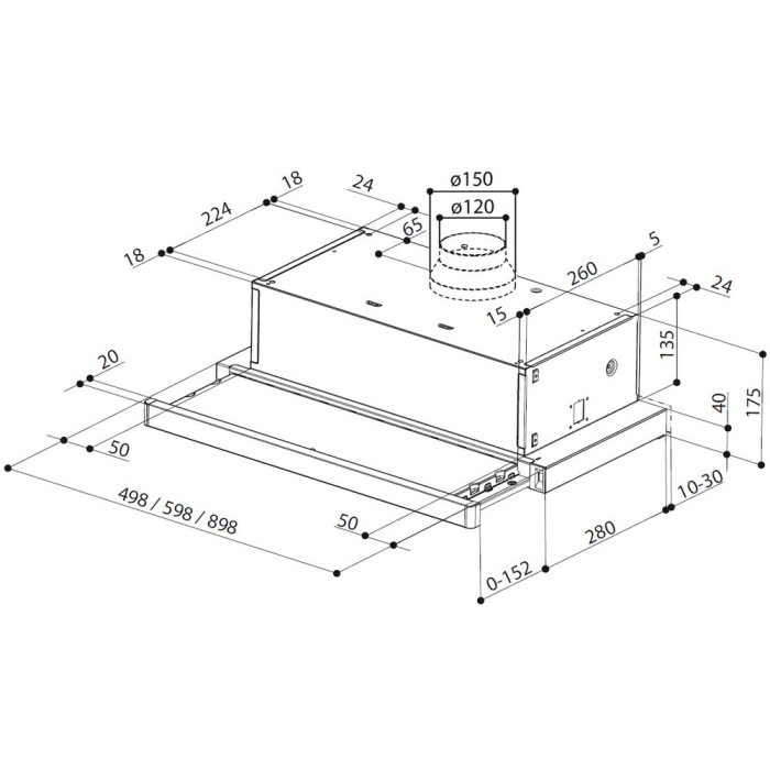 Vstavaný výsuvný odsávač FLEXA je veľmi elegantným riešením pre kuchyňu s obmedzeným priestorom. Nízka vstavaná časť odsávača vám navyše umožní využiť zostávajúce miesto v skrinke nad digestorom. Kovové kazetové tukové filtre, ktorými je digestor vybavený, môžete umývať v umývačke riadu a uľahčiť si tak údržbu.