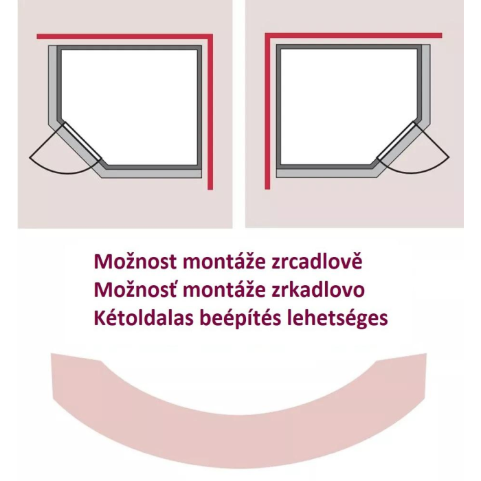 Celosklenené dvere z bronzového bezpečnostného skla hrúbky 8 mm. Priechodné rozmery dverí sú 64 x 173 cm. Dvere možno namontovať ako ľavé alebo pravé.