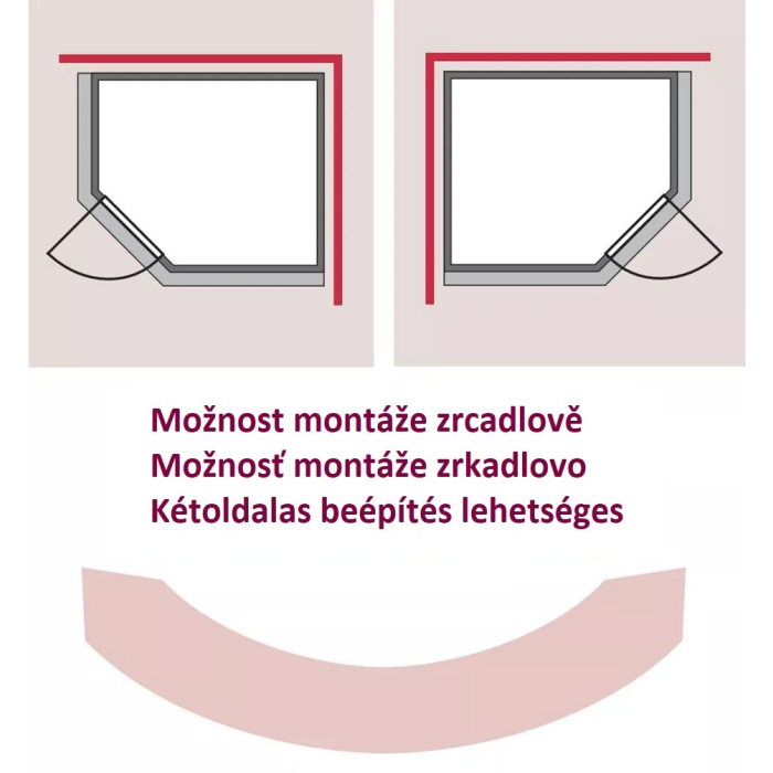 Celosklenené dvere z bronzového bezpečnostného skla hrúbky 8 mm. Priechodné rozmery dverí sú 64 x 173 cm. Dvere možno namontovať ako ľavé alebo pravé.