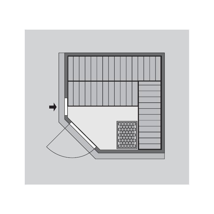 Sauna nemá vlastnú podlahu a je nutné ju umiestniť výhradne v miestnosti so zodpovedajúcou podlahovou krytinou, ideálne dlažbou. Saunu dodávame vo verzii so stropnou rímsou (profilom) pri strope vrátane LED osvetlenia 3 x 7,5 W.