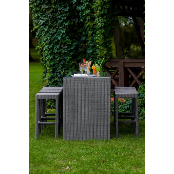 Táto sada splnila vkus zákazníkov, ktorí sa zameriavajú na originalitu a luxus. Sú vyrobené z ratanu, ktorý je synonymom pohodlia a pohodlia pri používaní. Materiál nie je citlivý na škodlivé účinky mnohých poveternostných podmienok. Perfektne sa hodí do letných a zimných záhrad, ako aj do barov. Ratanový záhradný nábytok GENIALE je najlepším riešením pre hotely a reštaurácie, ktoré si cenia luxus a uznanie zákazníkov. Ideálne pre spoločenské stretnutia. Ideálne na rýchlu kávu v lete ráno a na drink počas teplých letných večerov.