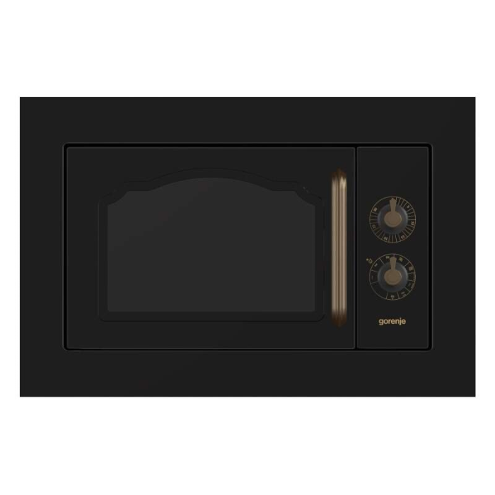 Vstavaná mikrovlnná rúra Gorenje BM235CLB v čiernej farbe so sklenenými dvierkami (2sklá) s lakovaným čelným panelom a 5 výkonovými stupňami. Čelný panel je sklenený, dvere sa otvárajú pomocou rukoväte.