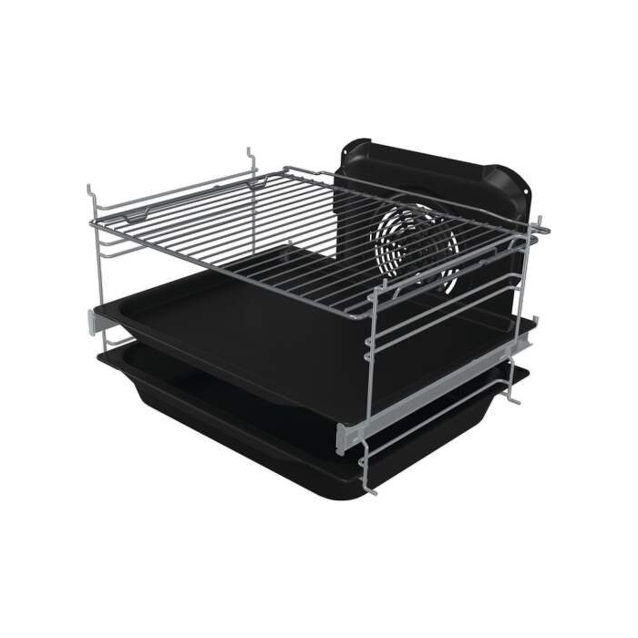Technológia MultiAir zaručuje optimálnu cirkuláciu horúceho vzduchu v rúre. Vďaka ventilačným otvorom, ktoré sa nachádzajú na zadnej stene a jedinečnému zaoblenému tvaru sa vzduch šíri rovnomerne po celej rúre. Ventilátor tlačí horúci vzduch okolo celého objemu rúry, čím sa jedlo dokonale upečie zo všetkých strán. Tento dynamický pohyb vzduchu umožňuje piecť súčasne na viacerých úrovniach bez miešania vôní a chutí.