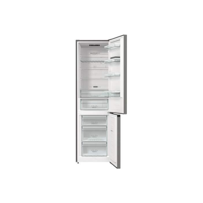 Kombinovaná chladnička Gorenje NRC620CSXL4 v nerezovom prevedení s celkovým objemom 361 litrov je zaradená do energetickej triedy C. Inteligentná technológia AdapTech pre udržanie optimálnej teploty vo vnútri aj pri častom otváraní dvierok. Chladiaca časť má objem 255 litrov. Vo vnútri sú 4 sklenené police, držiak na fľaše, 4 dverové police, zásuvku FreshZone a box CrispZone s reguláciou vlhkosti. 106 litrový mrazák v spodnej časti obsahuje 3 transparentné zásuvky (1x SpaceBox). Za 24 hodín zmrazí 13 kg surovín, výdrž pri výpadku až 9 hodín. Disponuje beznámrazovou technológiou No Frost Plus, systémom IonAir s Multiflow 360°, funkciou FastFreeze a XtremeFreeze. Úsporný Eco režim. Má výkonný invertorový kompresor s hlučnosťou len 37 dB. Prehľadný displej s dotykovým ovládaním a úsporné vnútorné LED osvetlenie. Pohodlné otváranie pomocou integrovaného madla a funkcii SlotIn.