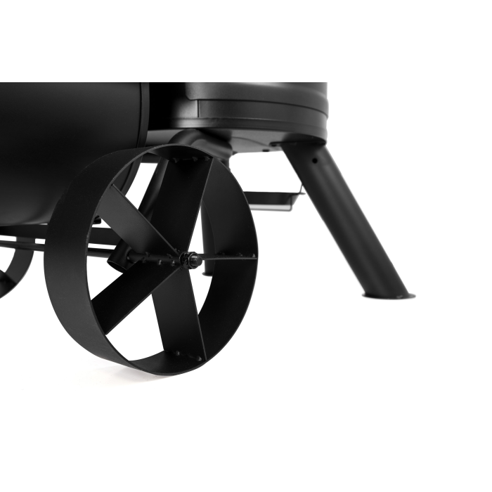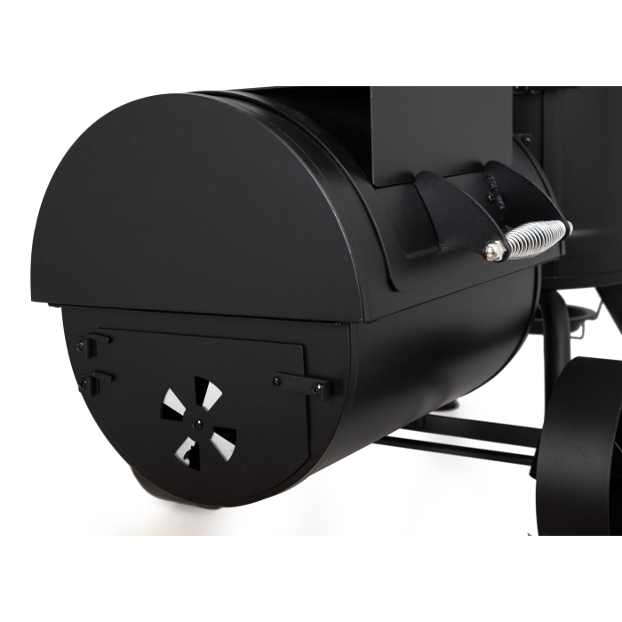 Veľká udiareň s grilom na drevené uhlie vyrobená zo silného plechu s hrúbkou až 2,5 mm s čiernym ohňovzdorným náterom. S dômyselným systémom regulácie vzduchu, vstavaným teplomerom a pojazdom pre ľahké presúvanie je dokonalou kombináciou grilu a udiarne.