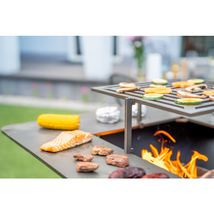 Súčasťou vybavenia grilu sú dva grilovacie rošty z uhlíkovej ocele. Jeden môžete vsadiť priamo do planchy a grilovať uprostred grilu v najväčšom žiari nad ohniskom.